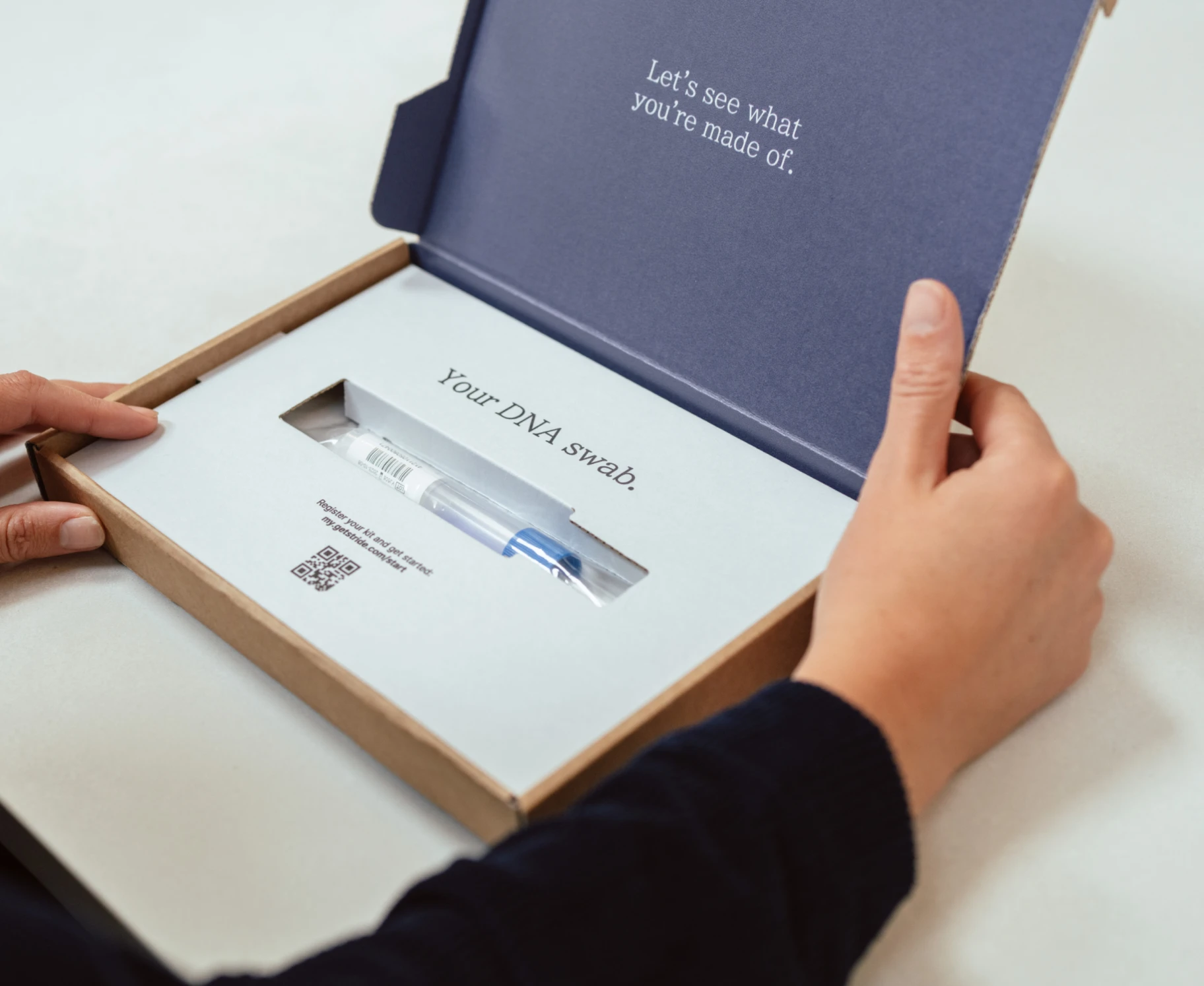 StrideDNA is an easy-to-use at-home DNA test kit, designed to help you take more informed actions toward better health. The test kit includes step-by-step instructions for a quick DNA sample collection process. The kit includes a free return mailer envelope for you to post your sample to our UK-based lab. After 10 business days, you'll be notified via email that your results are ready to review on your my.getstride.com account.